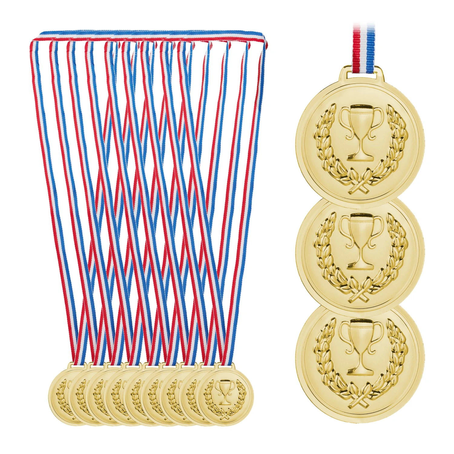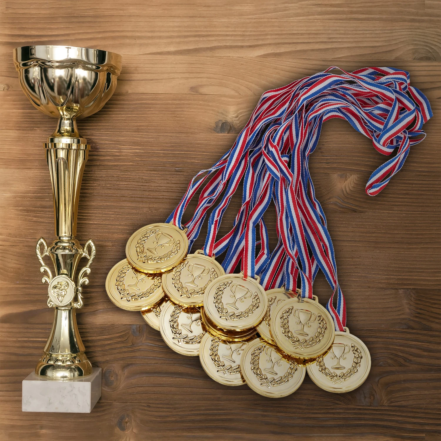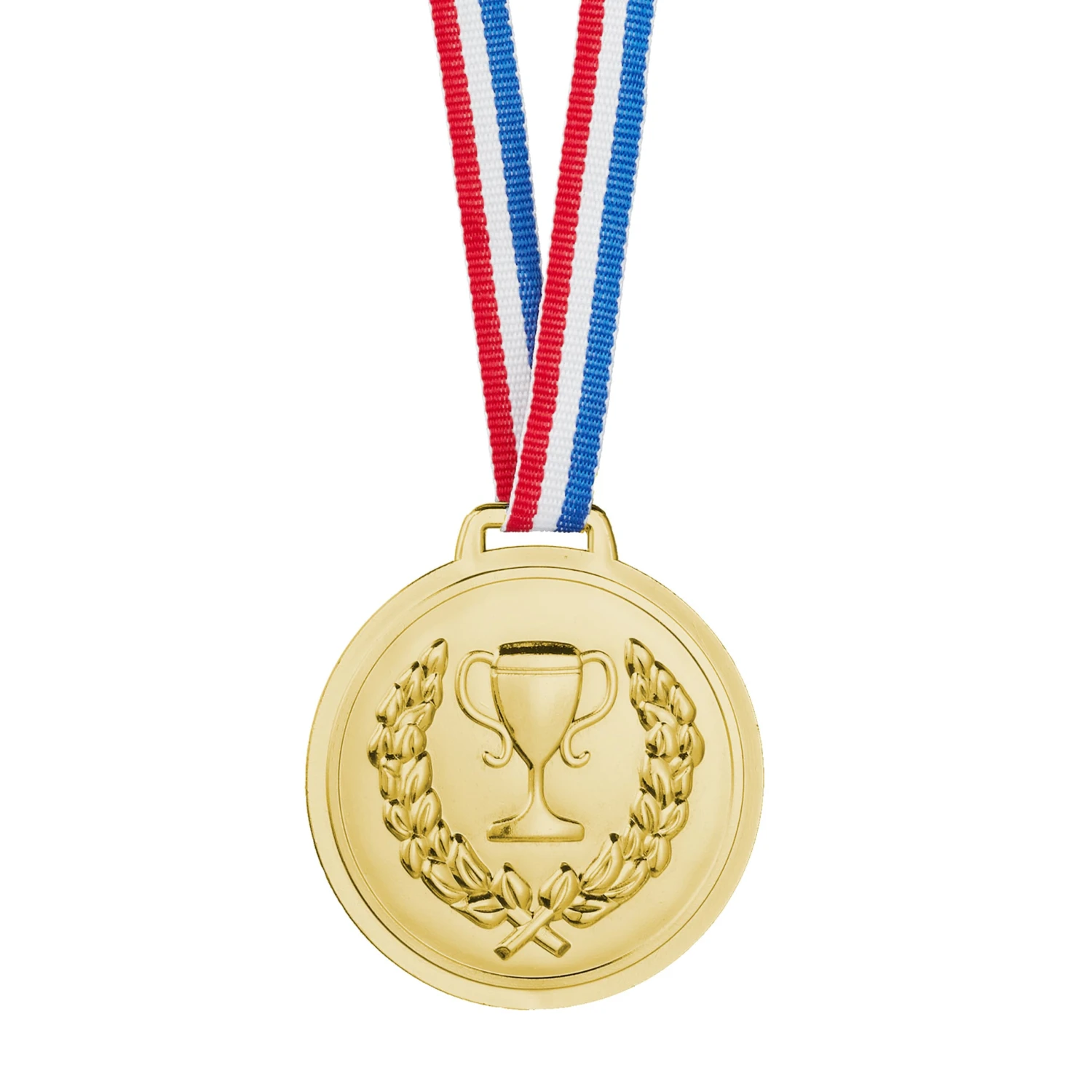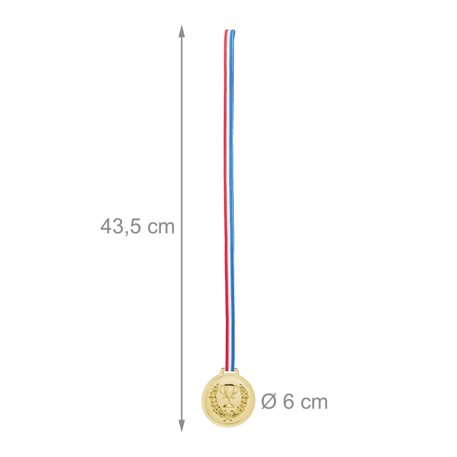 Diese Medaillen im 12er Pack sind eine tolle Auszeichnung bei Siegerehrungen auf Kindergeburtstagen und Olympiaden, bei sportlichen Veranstaltungen, wie Fußball oder Bowling, sowie bei kleinen Familienspielen. Beim Anblick der glänzenden Goldmedaillen werden die Kinder funkelnde Augen bekommen und sich bei den Wettbewerben so richtig ins Zeug legen. Die Spielzeugmedaillen sind mit einem blau-weiß-rotem Stoffband ausgestattet und lassen sich dank ihres Leichtgewichts bequem um den Hals tragen.