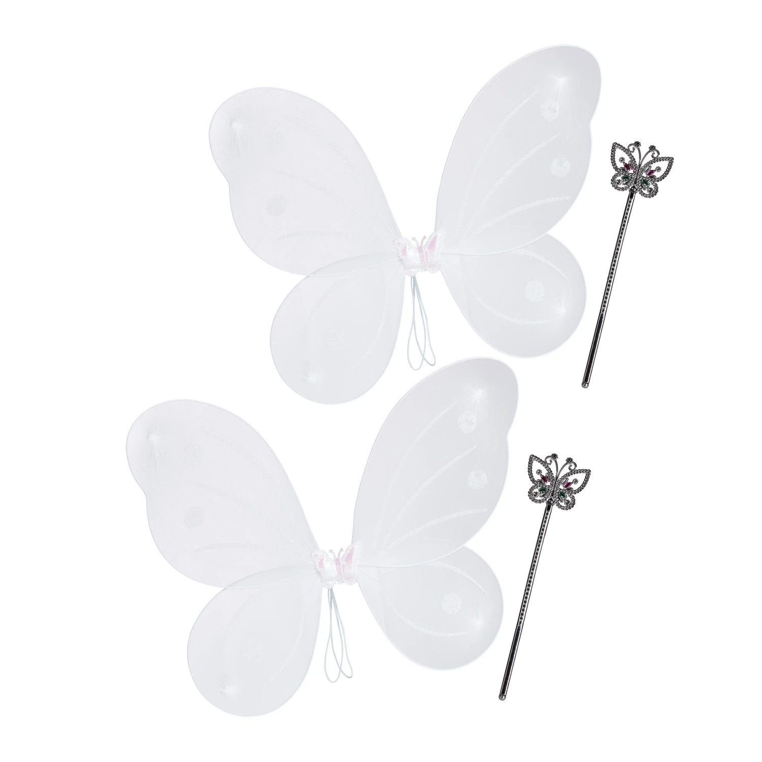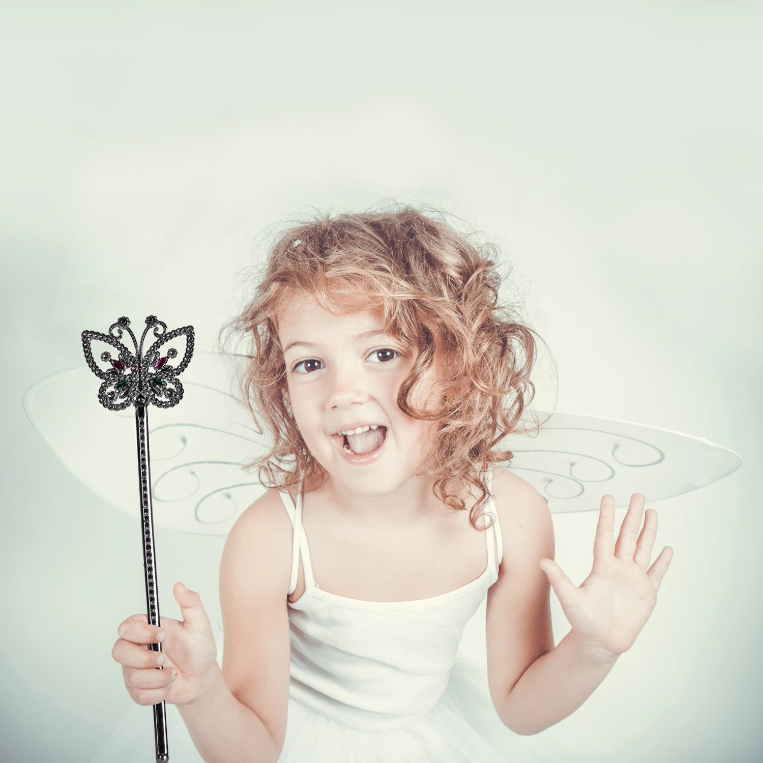 Welches kleine Mädchen träumt nicht davon, einen Tag lang eine zauberhafte Fee zu sein? Mit diesen niedlichen Feenflügeln und dem passenden Zauberstab wird dieser Traum jetzt ganz einfach wahr. Die viergeteilten Flügel aus Stoff sind mit verschiedenen Glitzerelementen verziert und werden in der Mitte von einem hübschen kleinen Schmetterling verbunden. Durch die elastischen Träger lassen sich die Kostüm Flügel einfach auf- und absetzen. Abgerundet wird das Fee Kostüm durch das silberne Feen Zepter.