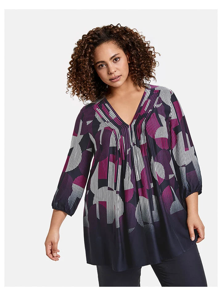 Bluse In Dunkelblau/ Pink