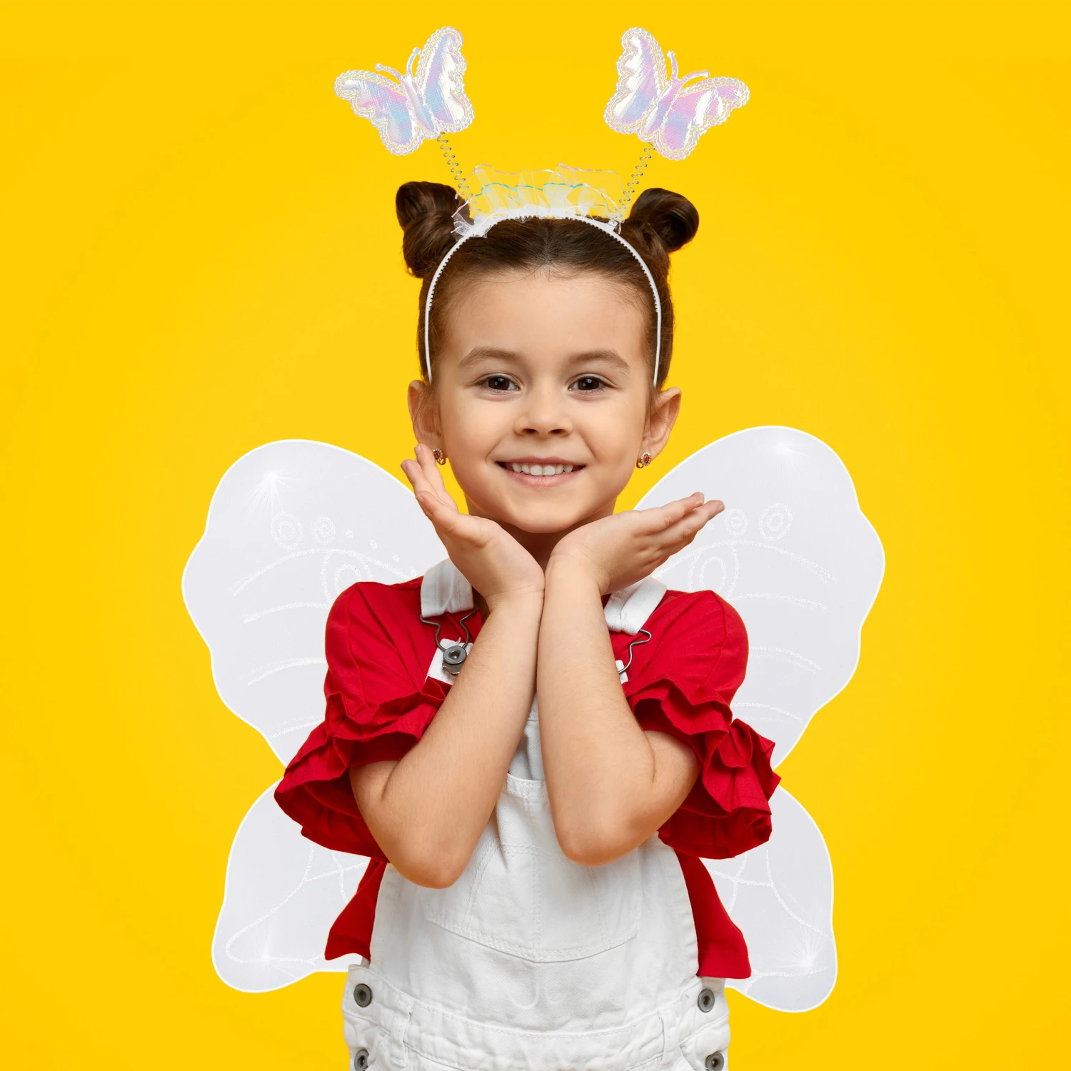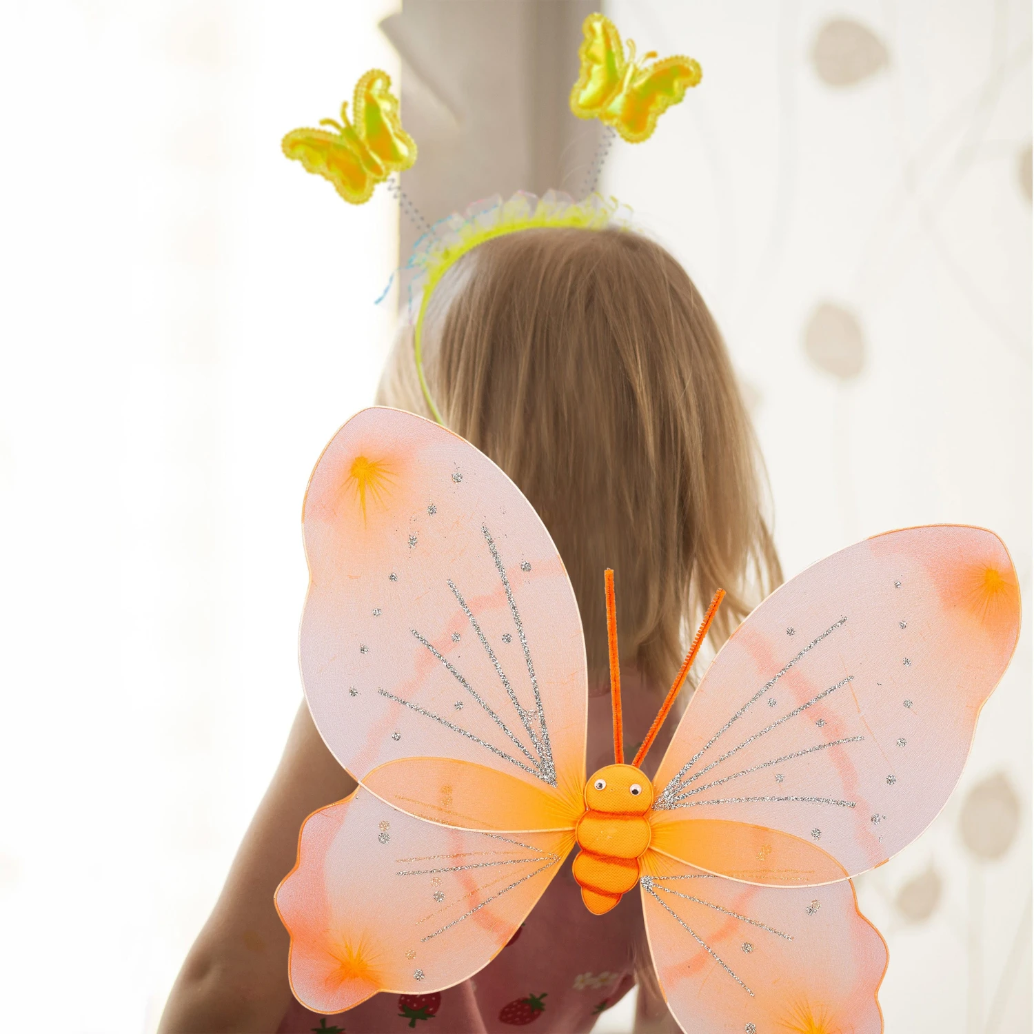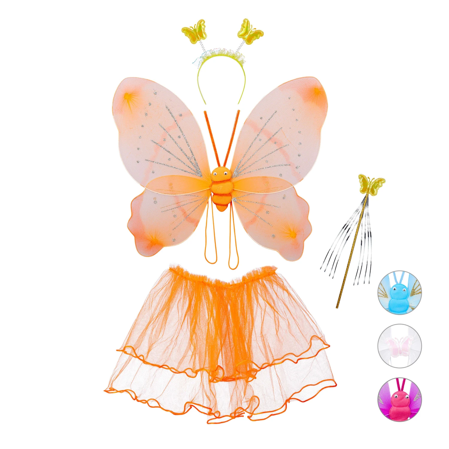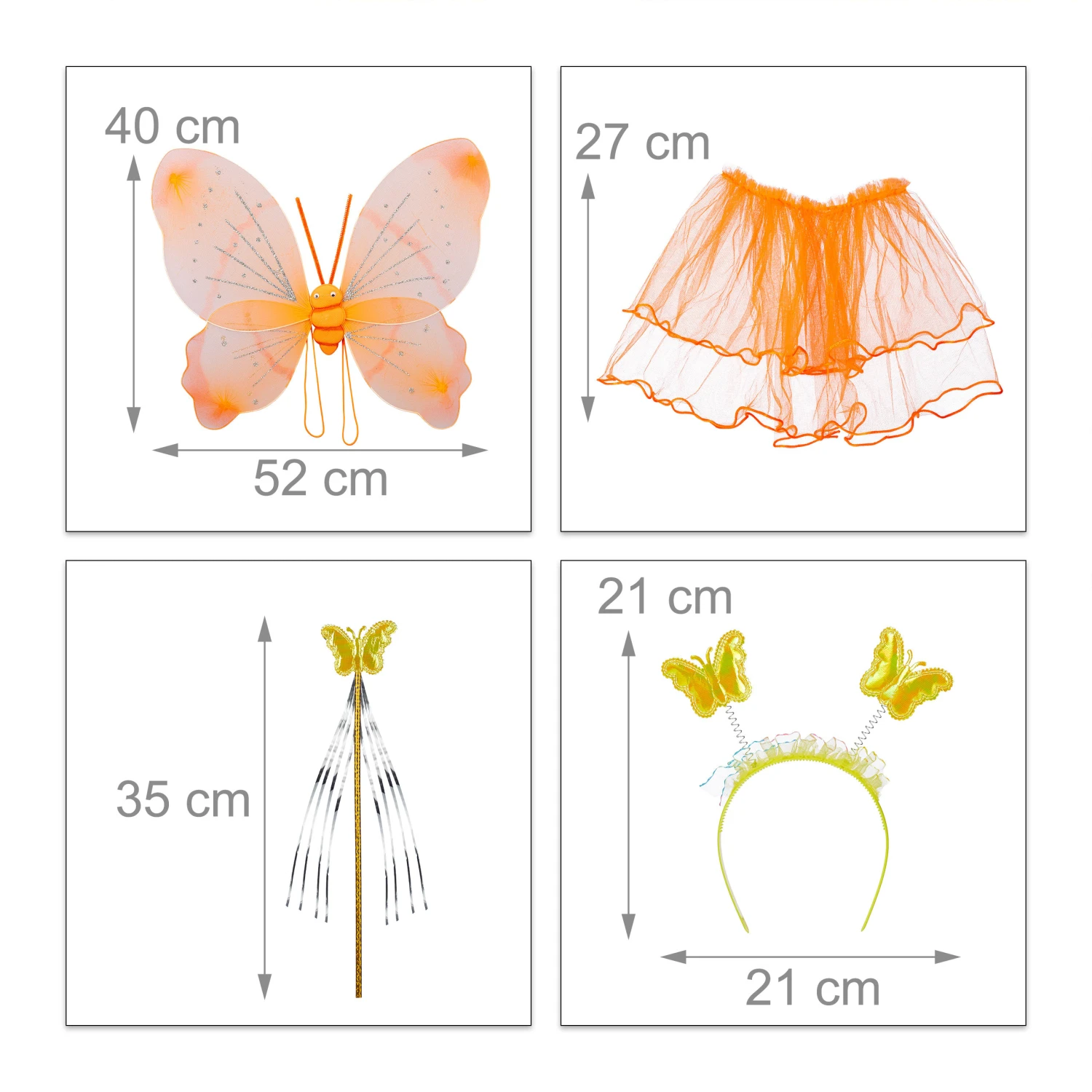 Welches kleine Mädchen träumt nicht davon, einen Tag lang eine zauberhafte Fee zu sein? Mit diesen niedlichen Feenflügeln, dem passenden Zauberstab, einem Haarreif mit Schmetterlingen und einem Röckchen aus Tüll wird dieser Traum jetzt ganz einfach wahr. Die viergeteilten Flügel aus Stoff sind mit verschiedenen Glitzerelementen verziert und werden in der Mitte von einem hübschen kleinen Schmetterling verbunden. Durch die elastischen Träger lassen sich die Kostüm Flügel einfach auf- und absetzen.