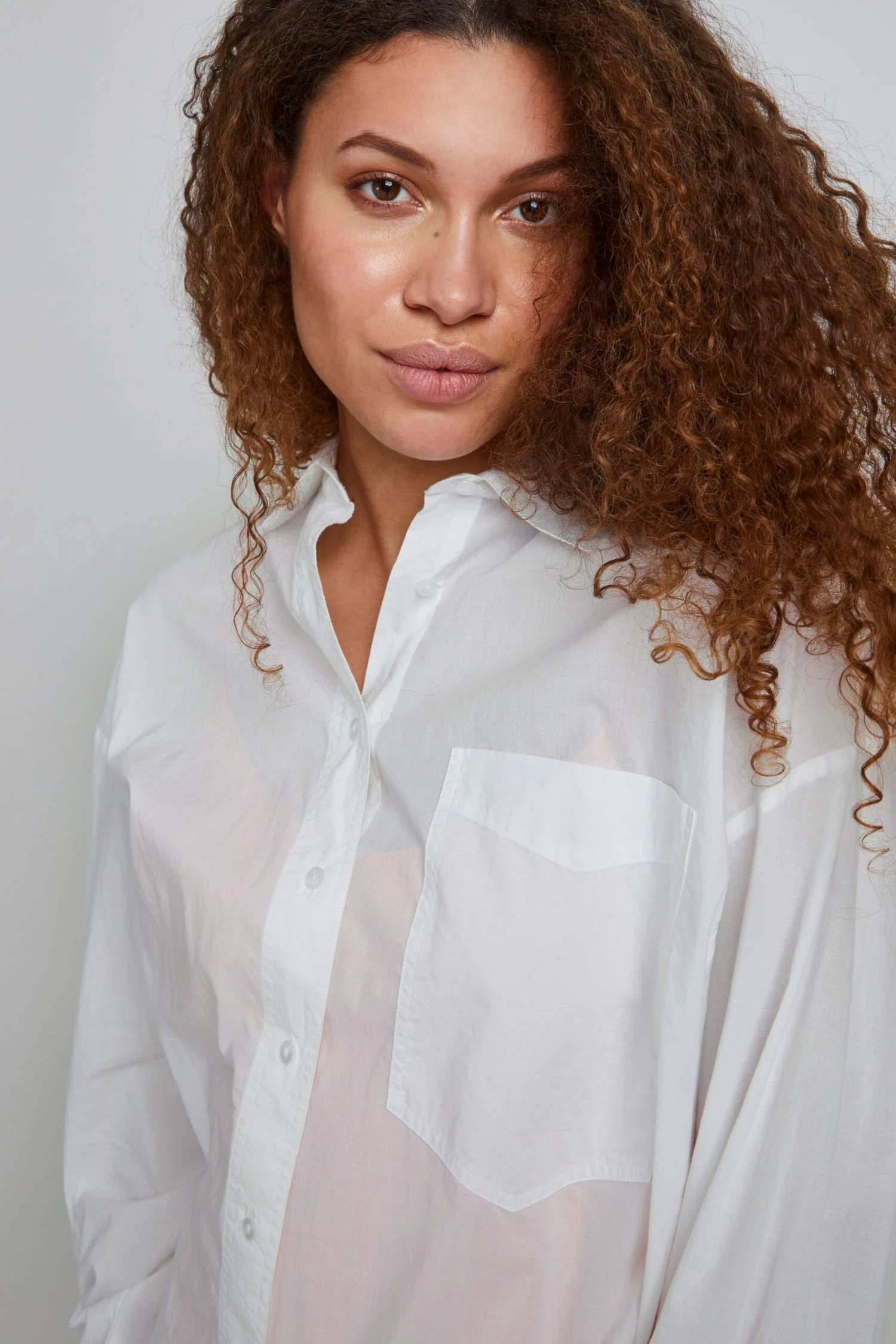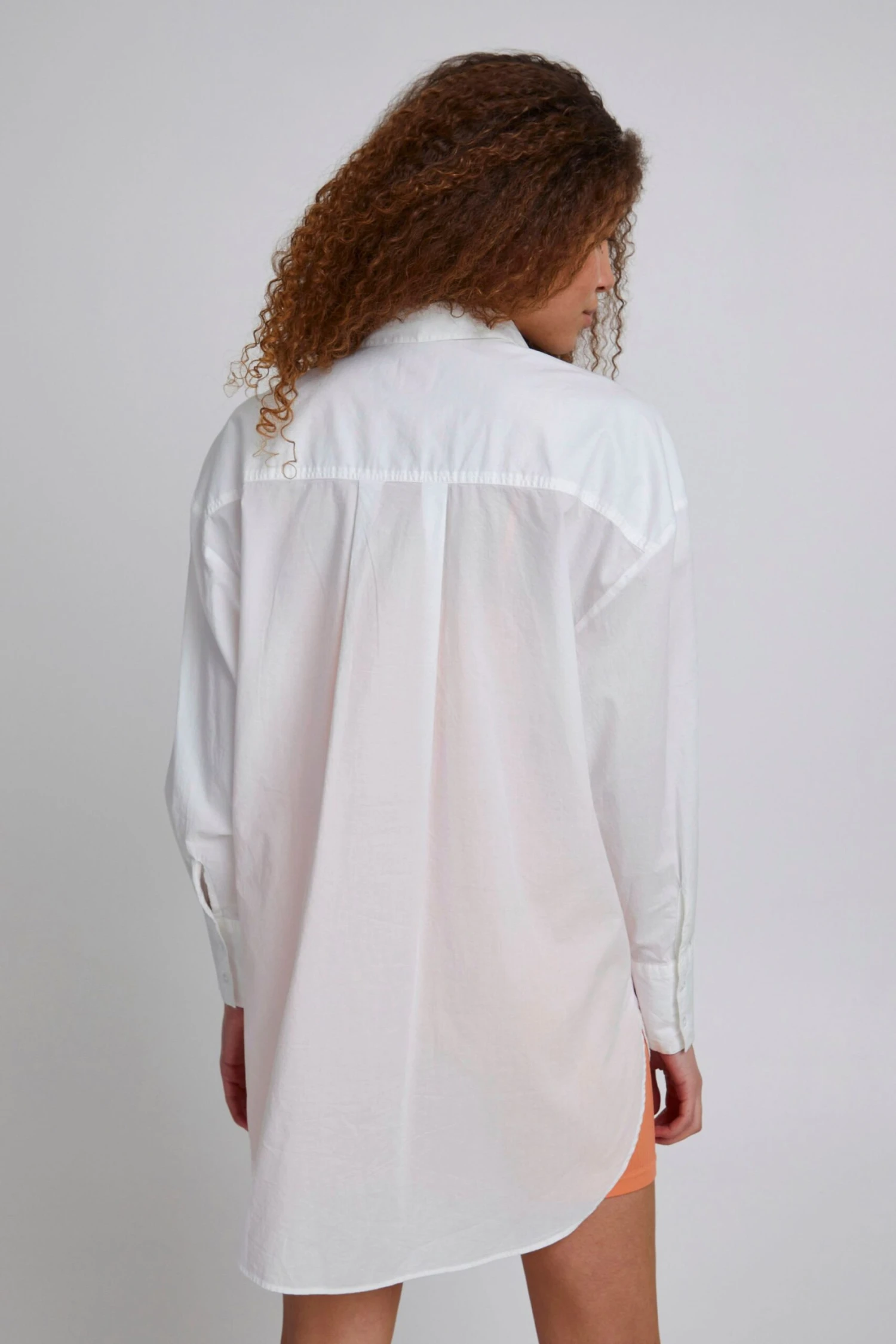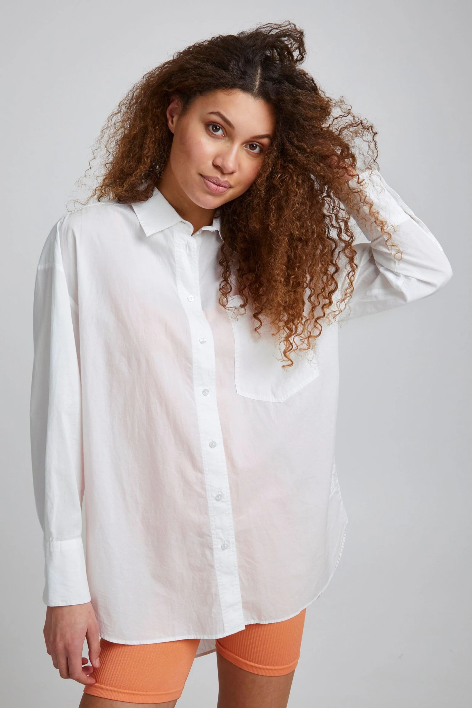DETAILS & HIGHLIGHTS: Lange Bluse mit Hemdblusenkragen, mit Oversize-Fit Passform, überschnittene Schultern, Langarm, Knopfleiste, mit aufgesetzter Tasche auf der linken Brust, abgerundeter Saum, Rückteil länger als Vorderteil, Ärmel mit Ärmelschlitz, breiter Manschette und zwei Knöpfen, sehr hochwertige und angenehm weiche Baumwoll-Qualität, unifarben