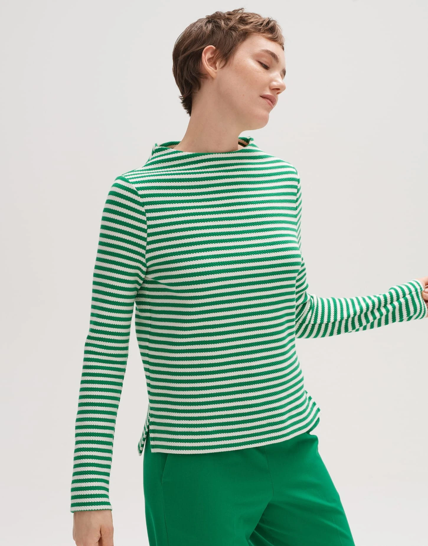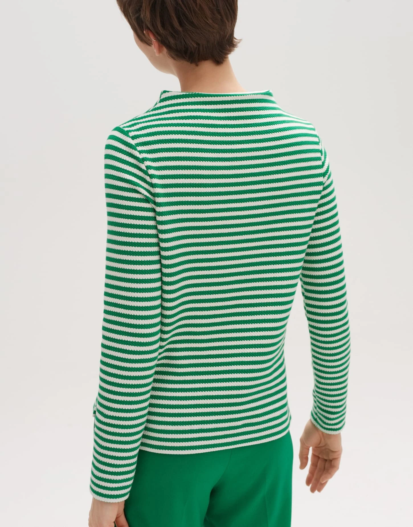 Baumwoll-Mix * Struktur * Funnelneck * Streifen * gerade, schmale Silhouette * das Model ist 176 cm groß und trägt Größe 36 Pflegehinweise: Gemusa